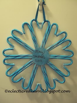 On Saturday, they were coming over to work on Christmas presents for their moms. She brought me this candy cane wreath that she had made. She is nine. What a lovely surprise.