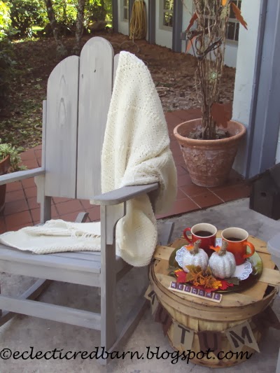 Remember those great free rocking chairs I got from my neighbor? Well, we use them all the time and I wanted to give them a fall update. I had hoped to post this before Halloween, but that never happened. As you can see, I had a Halloween pillow on one of the rockers. It has since been removed.