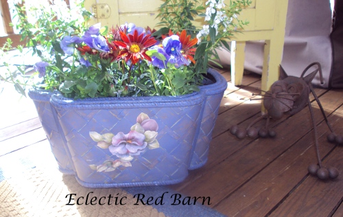 We have bulk pickup here once a month, where you can put out almost anything. Sometimes you can find some good things. Our neighbor is moving and after having a garage sale, put many items out for bulk pickup. I hate to have items going to landfills when they could be re-purposed. I find it difficult to pass up good items. I found three planters, a picture frame, she gave me a hutch (needs a lot of work - will see it later), a bed frame(at another house), and a hugh clock face at another house. Great finds - what a week!First to be finished were the three planters. I have pictures of the two wicker types, but I don't know what happened to the third original picture.