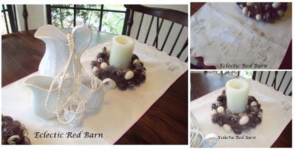 Love your tablescape!! I have the same eggs in a wood bowl with a swan on my dining room table.