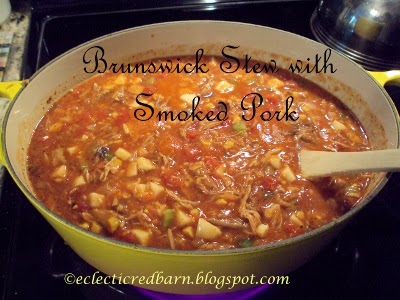 My husband craves Brunswick stew. He loves this stuff. His brother lives in Georgia and when we go there, we have to stop at every BBQ stand to try their Brunswick stew. Some are better than others. Last month when we were visiting my son, my husband was looking through a new cookbook and found this Brunswick stew recipe. That meant that I had to make it.