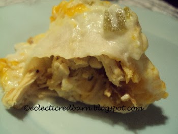 I added the sour cream and green chilies to the roux and poured it over the tortillas. Added the remaining cheese and baked it at 400 degrees for 20 minutes. Yummy!