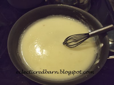 4. Melt butter in a medium saucepan; stir in flour to make a roux; stir and cook until bubbly; gradually whisk in chicken broth then bring to boiling, stirring frequently.