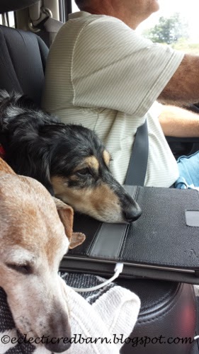 Add to that 4 dachshunds! I think we might be crazy!!!! We have more stuff in the car for the dogs than for us. Just like kids. Here is Marina and Louie with their faces on the console. They love being close to us.
