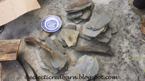 I found several Gulf Live Stock containers in the woods, but this was in the best shape. While we were having fun hiking in the woods, we found tons of rocks. I just love these Vermont blue stone. I just had to bring some home. My husband just rolled his eyes as I put things in a pile to take home.