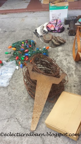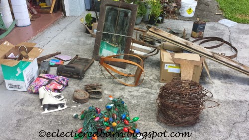 The mirror was in the old house when the people who had the barn sale moved it. I also bought the planter, ice skates and Christmas lights from her. I got a few other odds and ends.