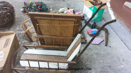 The vintage sled and old mirror came from a barn sale. The lady who had the sled told me it was hers when she was little and then pushed her kids in it when they lived in town. Now that they live in the country, there is no place to push the grand kids. I loved the sled and because she told me her story, it made it even more special.