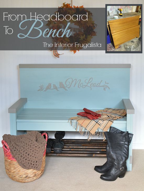 Earlier this summer a client asked me to keep my eyes open for a twin headboard to transform into a bench for her entry. It took a few months before finding the perfect headboard and footboard combination that would accommodate rails on the bottom for shoe storage.