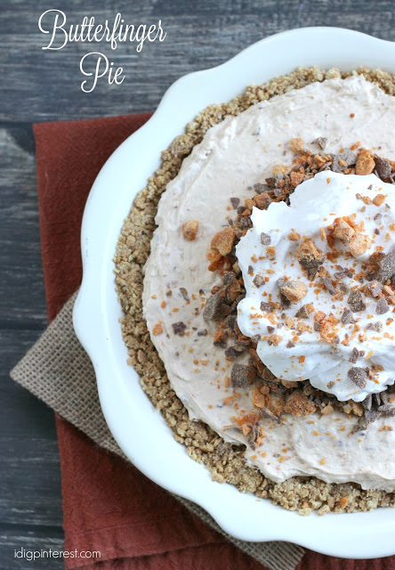 I'm thankful for many things, but one of those is definitely pie, so I created a themed meal surrounding it! For dessert, a layered, creamy confection with a graham cracker crust, spread with a peanut butter and BUTTERFINGER® Bits-infused filling, then topped with whipped cream and more Bits.