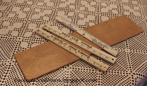 Many of you have been posting wonderful Valentine's Day ideas. I am not doing too much this year since I will be out of town during that time. I have some decorations from last year, but wanted something new. While cleaning in the garage, I came across these old rulers and this board. Just maybe?