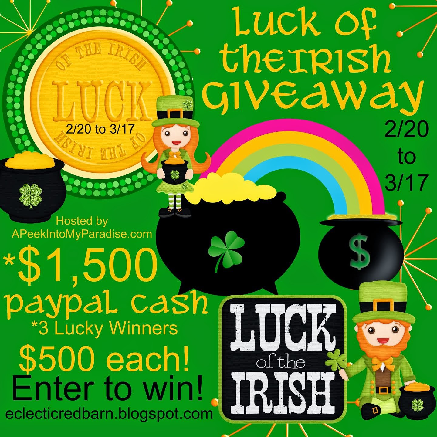 Happy St. Patrick's Day everyone! Are you seeing lots of green? Why not win some green? You could win one of three $500 cash prizes in the Luck of the Irish Giveaway that will end today. You still have time to enter and win.
