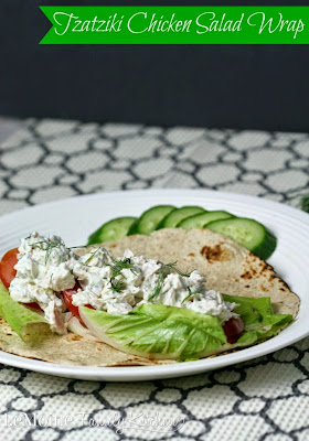 Greek inspired chicken salad, Tzatziki Chicken Salad Wrap. This one makes for a perfect lunch or light dinner, especially great for warmer weather days. The homemade tzatziki sauce is really what makes this dish so fantastic!