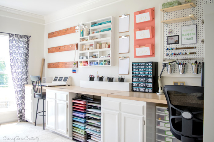 Isn’t that scary?! Now this one takes a lot for me to put out on the internet, but it is absolutely real life. Messy, messy even though that room is actually clean. I just had NO WHERE to put anything. I honestly did most of my crafting on the floor and I bet some of you know how that experience. The opposite wall (not pictured) is my husband’s desk and office space to do what he wants with. Ok, moving on! Are you ready for this??