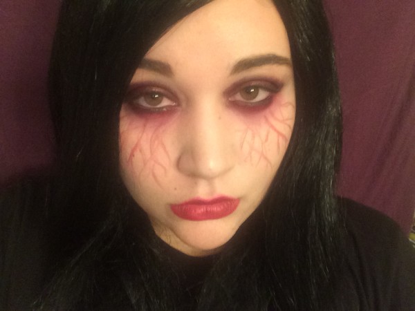 This vampire makeup look was inspired by The Vampire Diaries or, more specifically, Elena as a vampire. I love the way that they show the blood veins under their eyes when they’re struck with blood thirst; I just think it’s such a cool interpretation that kind of sets their makeup and special FX style for the show apart from others.