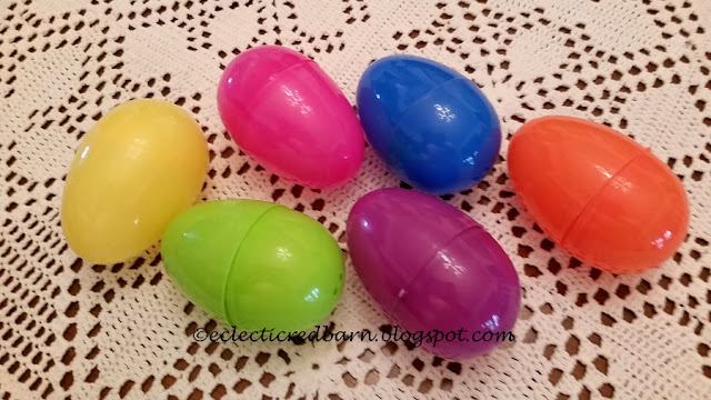 As we were moving things in the garage, I found these plastic eggs. I set them aside and the next day I thought about what I could do with them. Could I use them as fall decor?