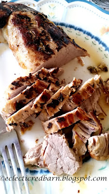 Our schedule has been so crazy lately so dinner is usually thrown together, so I wanted to make something better but still easy. I found a recipe for a pork tenderloin but it called for Marsala wine and I didn't have any so I used a white wine instead for the sauce.You coat the tenderloin with Dijon mustard and then browned it before baking it in the oven.