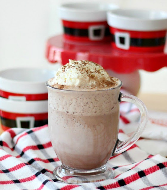 I love hot chocolate by the fireplace so I couldn't' resist this Frozen Hot Cocoa drink from Brandy at Gluesticks. I know that sounds like an oxymoron, but it looks and sounds delicious.