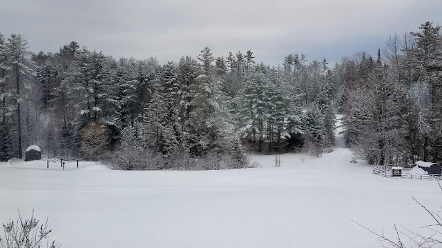 Yes, when the snow falls and lands on the trees and their branches, it is a lovely setting. I have been enjoying many of these such occurrences while visiting Vermont. Except for 2 days, it has snowed everyday since I arrived. After 8 days, you might think I should be use to it, but NO. Although it is pretty to look at, it is still cold.