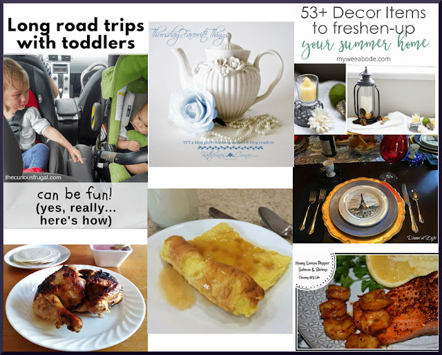 Thank you so much for stopping by our party. I hope your week is going well so far. I have been doing some painting. I painted a cabinet I found by the curb and we are also working on painting the exterior of the house. We have so many projects planned, but it seems as though one needs to get done before we can do the others. We want to put sod down, but can't until they pour the new walkway. I also want to fence in the front, but need to wait on the walkway and the sod. It will get done, just will take longer than I had hoped.