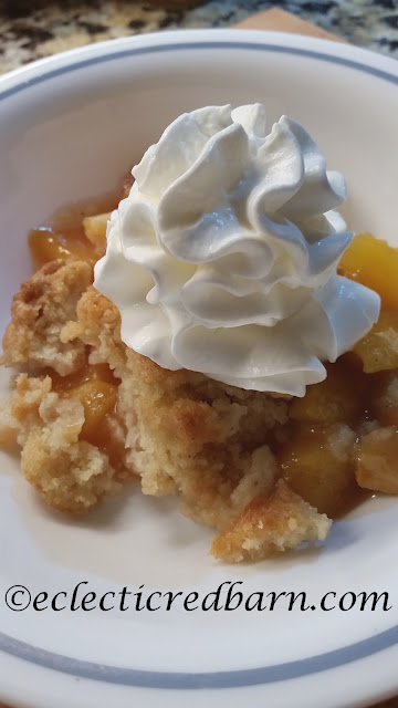 Well, as you may know, I brought back lots of peaches from the farm. I made peach hand pies and now it was time for peach cobbler. I am not sure if peach cobbler or peach pie is hubby's favorite dessert, but he does love them.