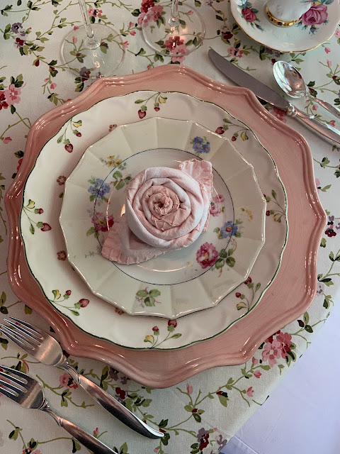 Beth from Whispers of the Heart shared a musical tablescape. She created this in memory of her loving mother who played the piano for 66 years before the Lord called her home! I have no idea where Beth comes up with these beautiful tablescapes, but you must check her out! This is stunning, and I love how the red pops on the black and white.