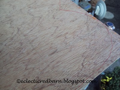 First: I found a piece of wood that would be big enough for my heart. I used a piece of lauan. I cut a heart from paper and then drew it on the front of the board and the back. Why the back, you will see later. Try and make sure they are in the same location.