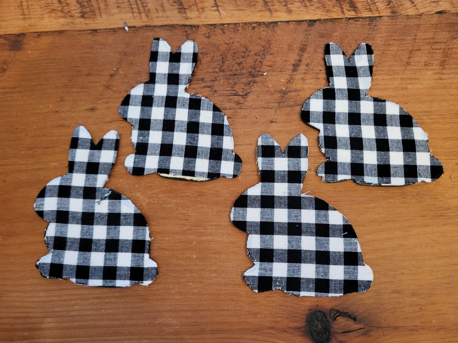 So while at the Dollar Tree, I came across a package of wooden bunnies. They were the right size, about 4 1/2 inches high. My sister was looking for a pattern too, so I sent her 4 of the wooden bunnies and that left me with 4.