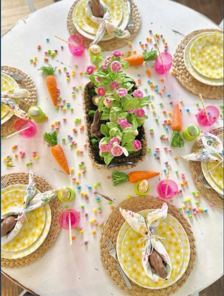 Children’s Easter table in bright colors by Karin's Kottage