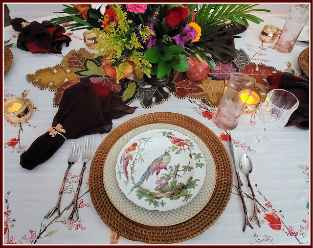 Bev, a sincere thank you for featuring my Chelsea Bird tablescape with all of these other lovely coordinated fall foods and crafts! They look so beautiful all together!