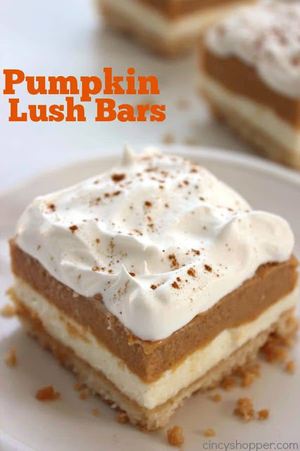 I love all things pumpkin and that ain't no lie! These Pumpkin Lush Bars from Jen at Cincy Shopper look like a dream to make and eat - give me all the pumpkin!