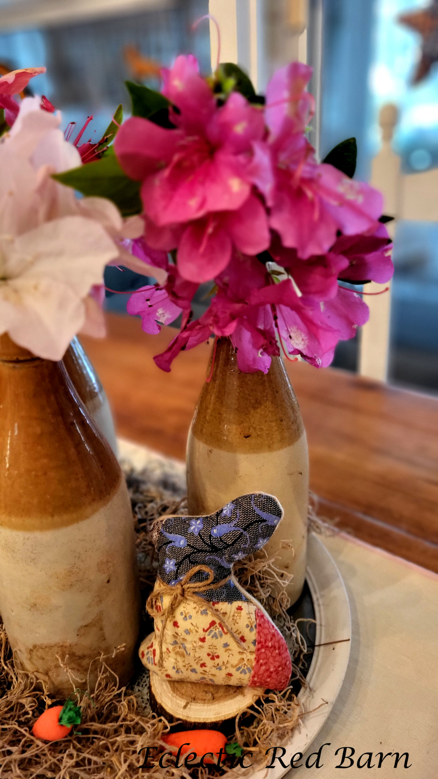 I tried to keep the display small since I usually have a bigger board on this table and hubby is always trying to move it. I put the larger Easter vignette on the dining room table. I was going to have it all Easter items and with the azaleas so pretty, I decided on them and just a few Easter things.