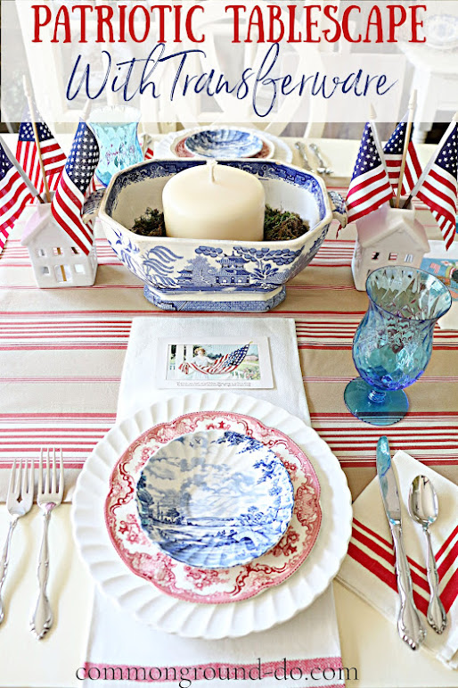 Thanks for having us over, Bev, and for sharing my patriotic tablescape!