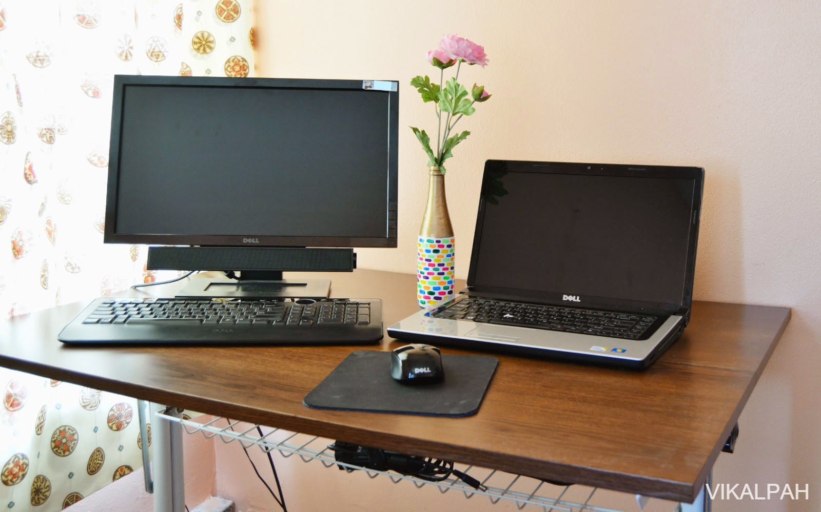 I ended up with this project when we were in real need for a large table.My husband wanted to get rid of the small glass table we already had and wanted a big table to accommodate his external monitor and also the laptop.We may move anytime so we don't like to splurge much on furniture and so we always hunt thrift store when there is a need.