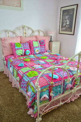 I had a customer request a modification to one of my most popular quilt designs. She wanted a full size ruffle flower rag quilt with 2 pillow shams. I was beyond excited to make this set for her. It has been a quilt that I have been wanting to make into a larger version, but without having a customer wanting it, it never got done.