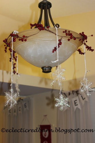 This was very easy and rather cheap. I saw this light decorated on Pinterest for Christmas and for some reason it stayed with me. So when I had finished my banners, the light looked so plain. I still had some berries left and the light called to me.