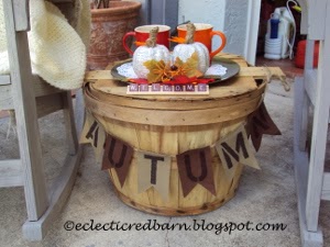 I attached the letters to some twine with my hot glue gun. I had purchased the basket at Long and Scott Farms for $2 - lid included.