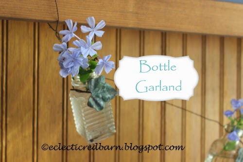 A couple of months ago, I saw three little bottles wrapped in wire to make a garland on Antique Farm House. Sorry I don't have a picture of the original one, but I liked it and wanted to recreate one for my deck. I think it was around $15.